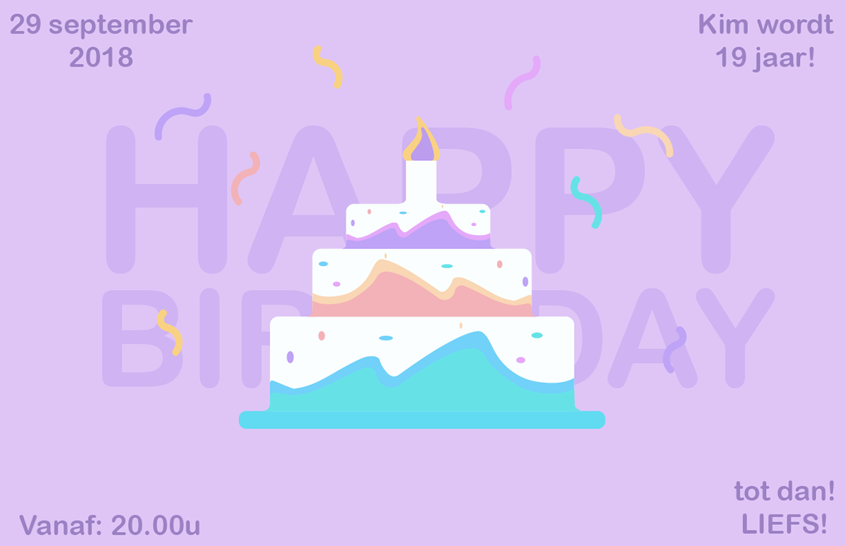 De uitnodiging die ik heb gemaakt voor mijn 19e verjaardag.